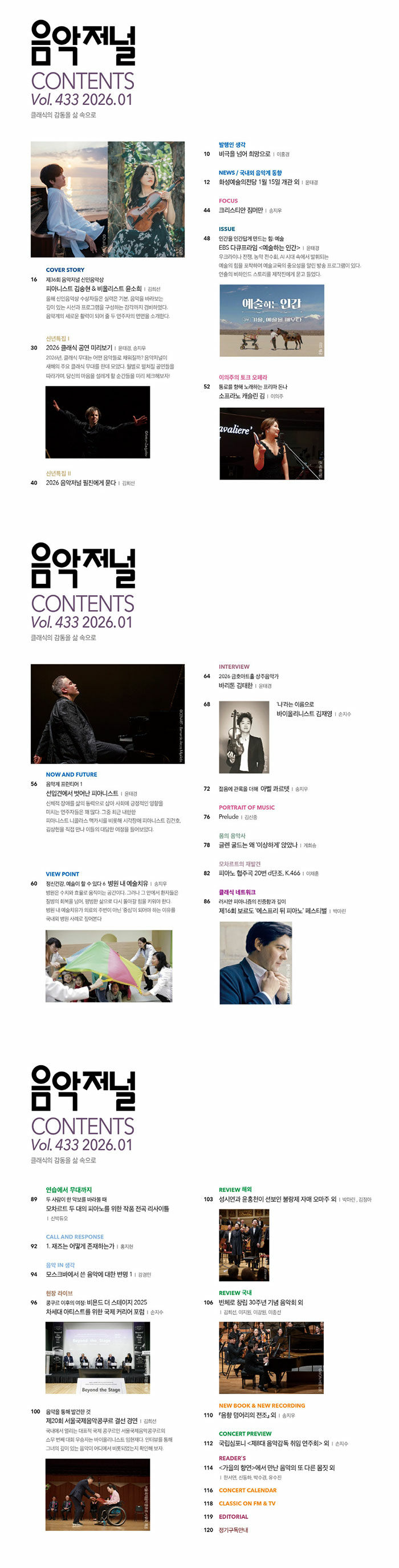2026년, 클래식 무대는 어떤 음악들로 채워질까? 음악저널이 새해의 주요 클래식 무대를 한데 모았다. 월별로 펼쳐질 공연들을 따라가며, 당신의 마음을 설레게 할 순간들을 미리 체크해 보자!