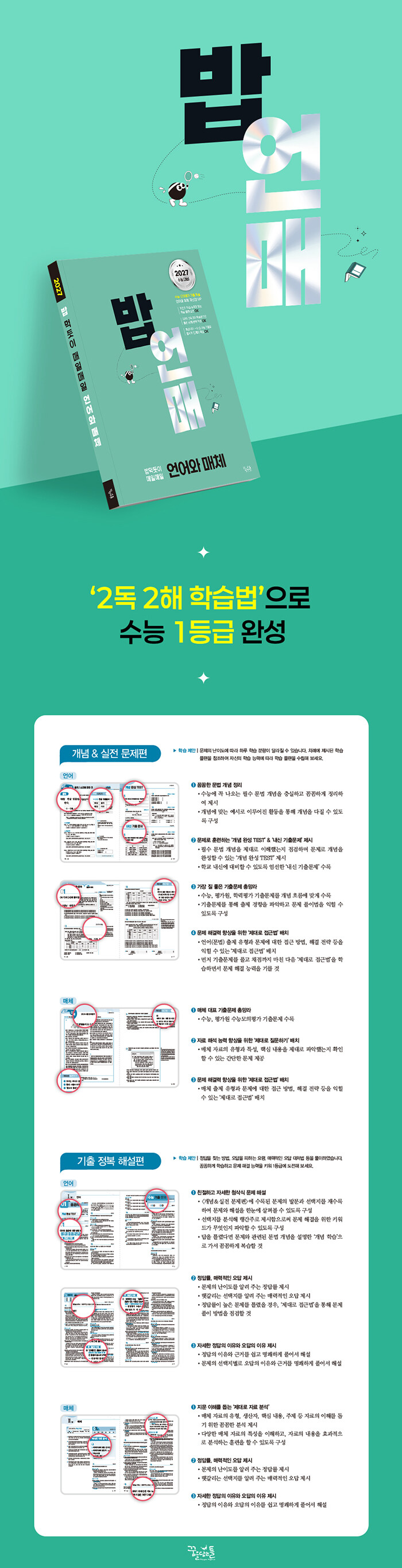 '학생들에게는 국어 능력을 향상시켜주는 최고의 책, 선생님들에겐 알찬 수업이 되게 하는 최적의 학습 도구'를 만들자는 생각으로 20여 년간 국어 학습서 문제집을 집필하고 제작하여왔다.매년 10만 이상의 고등학생들이 사용하던 <꿈틀 국어 상.하>를 비롯하여 <모든 것 시리즈>, <첫 수능 시리즈>, <심쿵 명강 시리즈>, <국어는 꿈틀 시리즈>, <완성 시리즈>, <문학 비책> 등이 초심을 지키며 만들어낸 결과물로 학생들과 선생님들에게 많은 사랑을 받고 있다. 특히, 교재 집필을 하며 도움과 관심이 필요한 곳을 찾아 사회 환원 활동을 하자는 뜻을 함께한 공동 집필자들을 만난 것은 인생의 기쁨이 아닐 수 없다. 이런 마음이 모여 집필을 하였기 때문에 더 좋은 책을 만들 수 있지 않았나 싶다.<밥비><밥어휘력><밥문학><밥문법 어휘><예비 밥시리즈>는 매일매일 개별 학습자의 능력에 맞게 <학습 플랜>을 짜고 [제대로 독해법]과 [제대로 풀이법]으로 기출을 학습할 수 있게 되어 있다. 수능 국어가 유형화된 지문과 문제를 정해진 시간에 정확히 독해하고 해결하는 능력을 평가하는 쪽으로 변화하여 왔기 때문에 <밥 시리즈>는 변화된 수능 국어에 가장 알맞은 수능 기출 학습 교재라고 할 수 있다.앞으로도 학생들과 선생님들에게 꼭 필요한 교재를 만드는 일에 초심을 지키며 힘을 다해나갈 것이다.