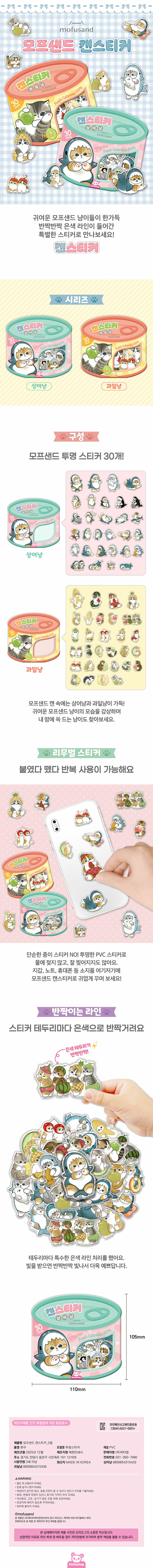 귀여운 모프샌드 고양이들이 반짝이는 실버 라인으로 완성된 투명 스티커로 찾아온다. 상어 컨셉의 고양이 친구들이 등장하는 상어냥과, 과일과 고양이가 어우러진 과일냥 두 가지 테마로 일상 소품에 확실한 포인트를 더한다.