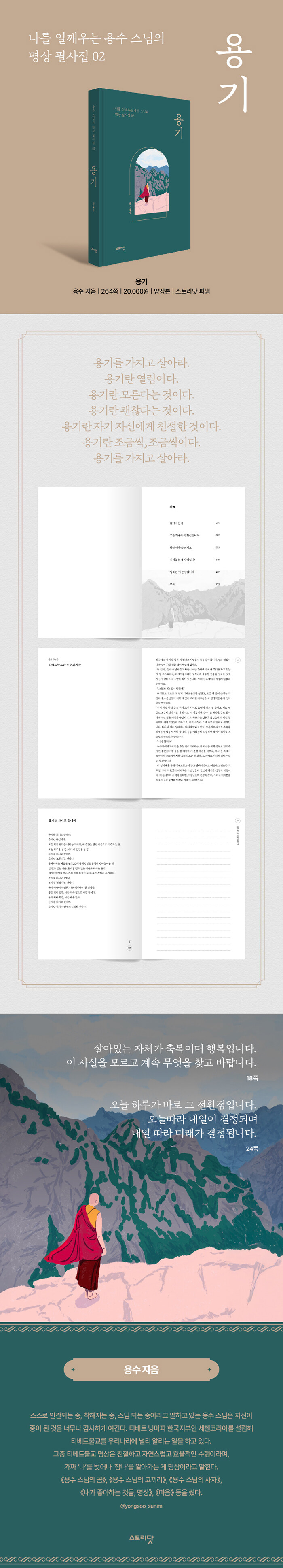 스스로 인간되는 중, 착해지는 중, 스님 되는 중이라고 말하고 있는 용수 스님은 자신이 중이 된 것을 너무나 감사하게 여긴다. 티베트 닝마파 한국지부인 세첸코리아를 설립해 티베트불교를 우리나라에 널리 알리는 일을 하고 있다.그중 티베트불교 명상은 친절하고 자연스럽고 효율적인 수행법이라며, 가짜 '나'를 벗어나 '참나'를 알아가는 게 명상이라고 말한다. 《용수 스님의 곰》, 《용수 스님의 코끼리》, 《용수 스님의 사자》, 《내가 좋아하는 것들, 명상》, 《마음》 등을 썼다.@yongsoo_sunim