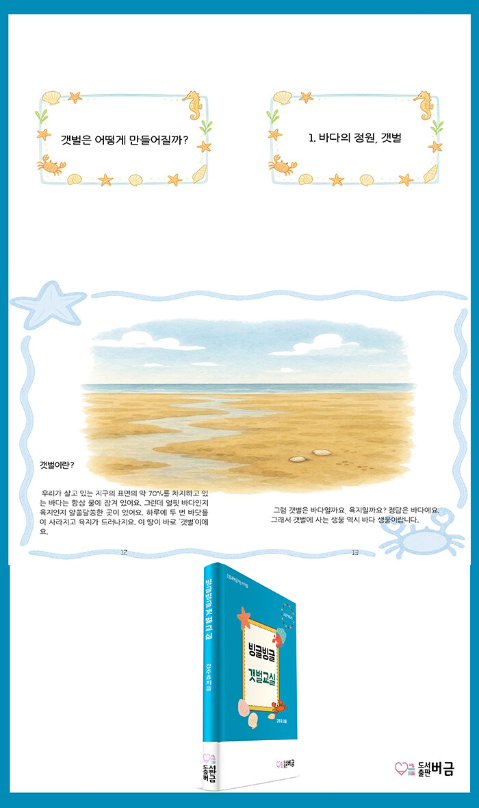 이 책은 여러분에게 갯벌의 멋진 모습을 보여 주고, 그 안에서 일어나는 신기한 일들을 쉽게 알려 주기 위해 만들었어요. 갯벌의 생물들은 어떤 모습일까? 갯벌은 어떻게 만들어졌을까? 우리는 갯벌을 지키기 위해 무엇을 할 수 있을까? 이 책을 읽으며 이런 궁금증을 하나씩 풀어 볼 수 있어요.