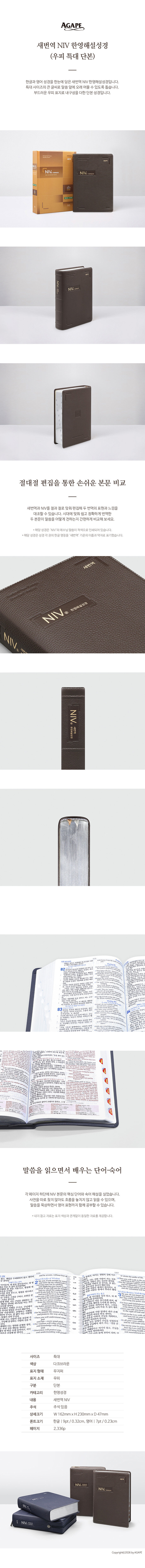한글과 영어 성경을 한눈에 담은 새번역 NIV 한영해설성경이다. 특대 사이즈의 큰 글씨로 말씀 앞에 오래 머물 수 있도록 돕는다. 부드러운 우피 표지로 내구성을 더한 단본 성경이다.