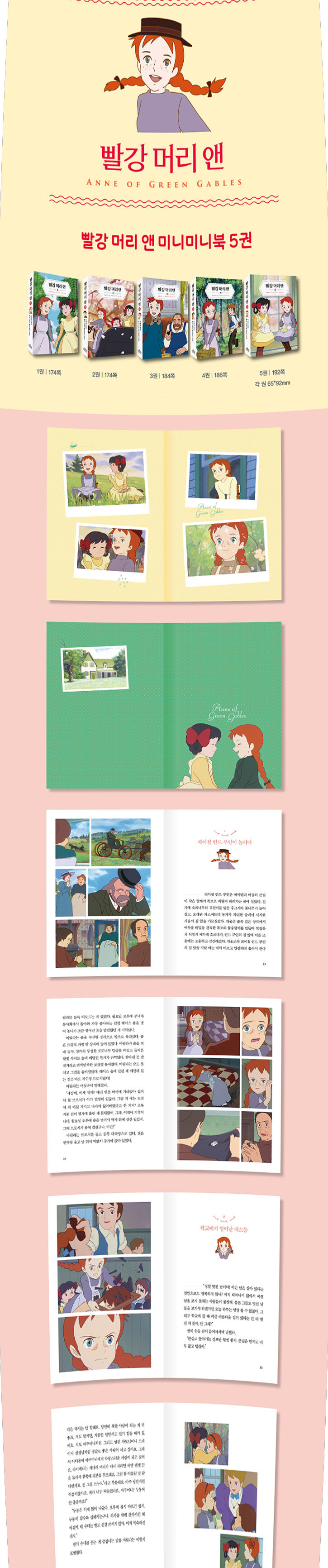 역대 최강의 러블리 캐릭터 ‘앤 셜리’가 프린스에드워드 섬에 정착해 학교를 다니고 우정을 쌓으며 사랑을 배워나가는 과정을 담은 《빨강 머리 앤》은 ‘앤 시리즈’의 첫 번째 이야기다. 시리즈 중에서도 소녀 시절 앤의 명랑한 성격과 낭만적인 상상력이 잘 드러나 있어 독자들에게 행복한 기운을 전달해주는 작품이다. 특유의 낙천적인 성격으로 사람들과 함께 호흡하며 성장해나갔던 가장 사랑스러운 아이 ‘빨강 머리 앤’을 작고 가벼운 미니미니북으로 만나보자.
