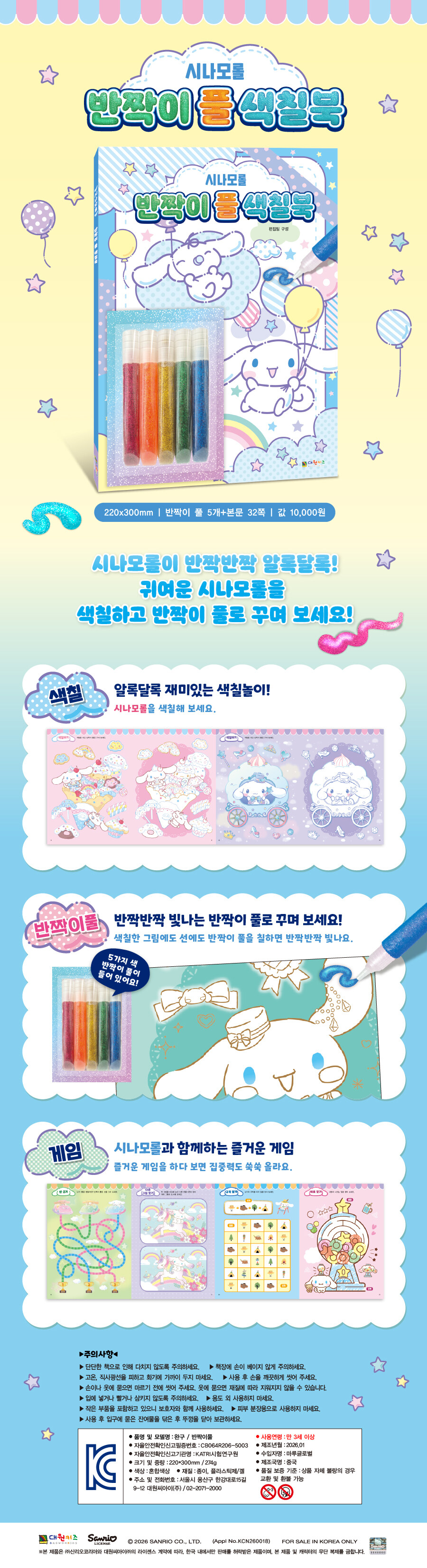 귀여운 시나모롤을 색칠하고 반짝이 풀로 꾸며 보세요!