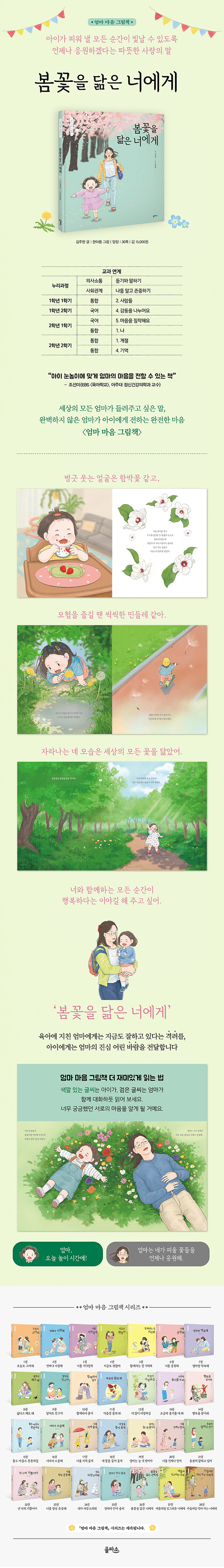 엄마가 아이에게 전하고 싶은 마음을 담은 《엄마 마음 그림책》 시리즈 스물여섯 번째 권 《봄꽃을 닮은 너에게》가 출간되었다. 아이가 태어나 자라는 모습을 봄꽃에 비유하며, 예쁘게 자라는 아이의 모습을 응원하는 엄마의 마음을 담았다.
