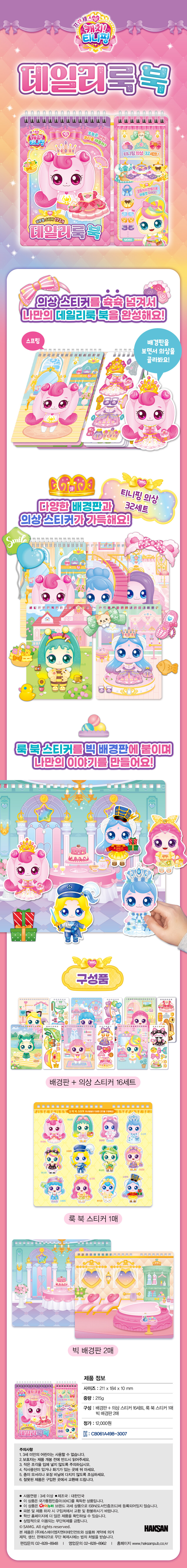 의상 스티커를 슉슉 넘겨서 나만의 티니핑 룩 북을 완성하자. 스프링으로 되어 있어 배경판을 보면서 의상을 넘겨 고를 수 있다. 프린세스에 잘 어울리는 옷을 슉슉 넘기며 골라 붙여보자. 마지막으로 룩 북 스티커를 빅 배경판에 붙이며 나만의 이야기를 만들어 보자.
