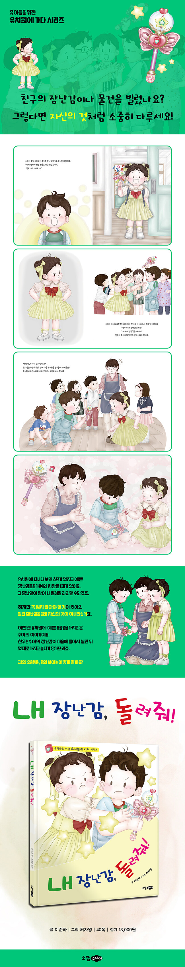 그건 내 장난감이야! 돌려줘!어느 날 수아가 빛도 반짝반짝 나고 소리도 나오는 요술봉 장난감을 유치원에 가져왔어요.