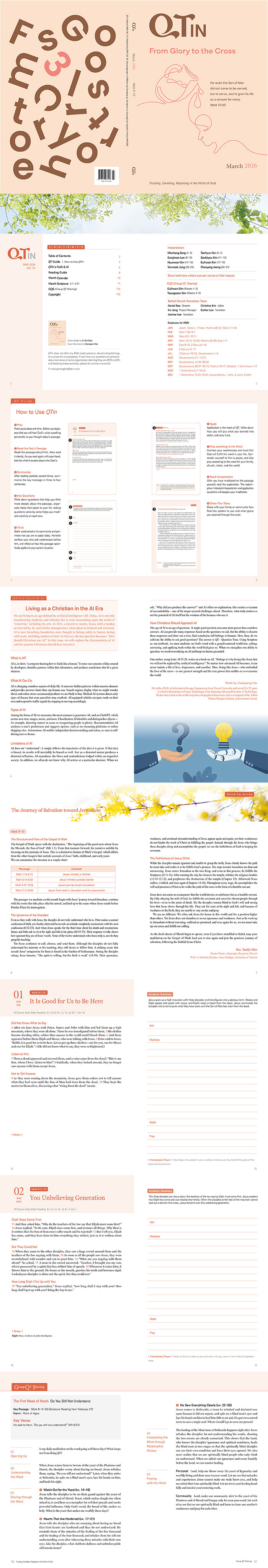 《QTin》 Trusting, Dwelling, Rejoicing in the Word of GodIt is for those Christian young adults and adults who want to read the Bible with the redemptive history and change their lives in accordance with the Biblical perspective. Nowadays, more than seventy staffs for writing and editing are dedicated to serving the meditation movement on the Bible, based in the redemptive history.