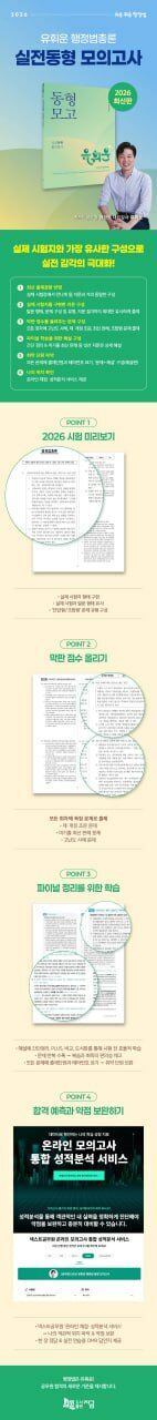 『2026 유휘운 행정법총론 실전동형 모의고사』는 2026년 국가직·지방직 공무원 행정법 시험 대비를 위한 실전동형 모의고사 문제집으로, 본서의 특징은 다음과 같다.
