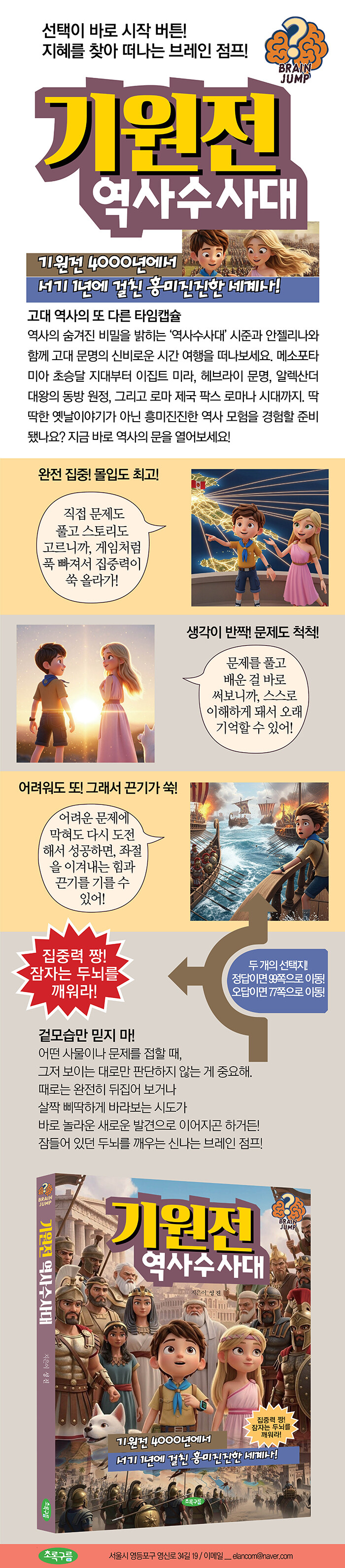 어릴 때부터 새로운 이야기 속으로 뛰어드는 것을 누구보다 좋아한 사람입니다.그래서 홍익대학교에서 미술을 공부하며 그림 속에 숨은 비밀을 찾았고,예술·신화·고전 이야기를 재미있게 엮어 들려주는 일을 계속해 왔습니다.지금은 세계 곳곳의 신화와 명작들을아이들도 신나게 읽고, 직접 모험처럼 경험할 수 있도록새롭게 바꾸고 만드는 작가로 활동하고 있어요.저자가 만든 책에는그리스·로마 신화, 일리아스, 오디세이아, 세익스피어 이야기 등오랫동안 사랑받아온 명작들이 많습니다.덕분에 TV 프로그램 〈설민석의 그리스 로마 신화〉 제작에도 참여했고,유튜브에서도 여러 번 소개되었답니다.저자는 지금도 “다음엔 어떤 모험을 만들까?”를 생각하며아이들이 책 속 세계에 직접 뛰어들 수 있는 이야기를 만들기 위해즐겁게 글을 쓰고 있어요.브레인 점프 시리즈의 새로운 모험 역시그의 손끝에서 태어났습니다!
