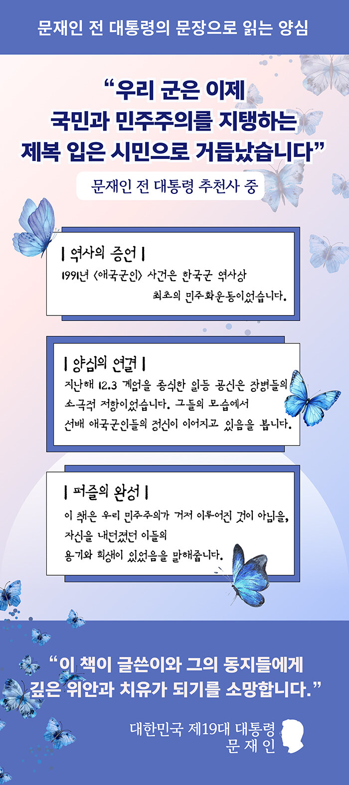 책은 2024년 12월 3일 비상계엄 당시 국회에서 ‘소극적으로 임무를 수행하며 저항한 젊은 애국군인들’에게 바치는 헌사로 시작한다. 과거의 사건을 회고하는 데 그치지 않고, 민주주의가 언제든 다시 시험대에 오를 수 있음을 현재 시제로 환기한다. 저자는 “역사는 거대한 영웅담이 아니라, 각자의 자리에서 양심을 지키려 한 청년들의 선택이 쌓인 결과”임을 강조한다.