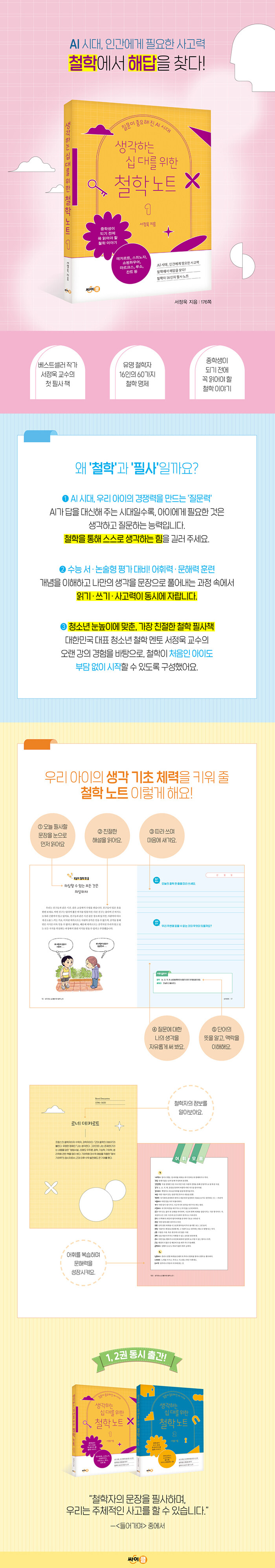 2028학년도 대입 제도 개편으로 수능과 내신에서 서·논술형 평가가 강화되는 흐름 속에서, 어휘력·문해력·사고력을 함께 기르는 훈련서로 자리한다. 철학을 어렵고 추상적인 학문이 아닌 사고력 훈련으로 경험하게 하며, AI 시대에 필요한 질문하는 힘의 토대를 다진다.