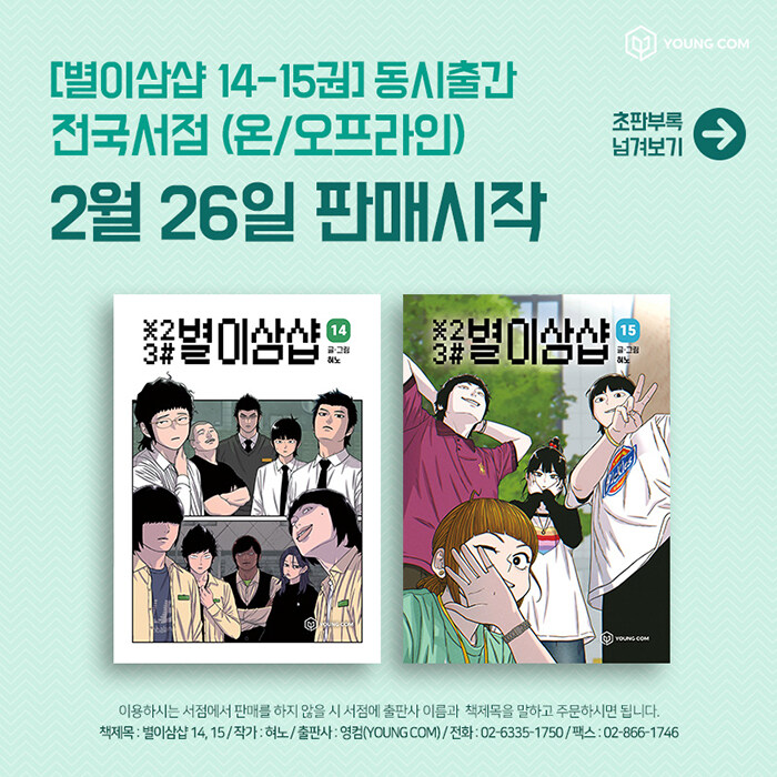 혀노 작가의 <별이삼샵> 단행본 출간그때 그 시절 우리들의 이야기. 혀노 작가의 <별이삼샵>이 단행본으로 출간된다. 많은 사람들의 향수를 자극하고 공감대를 형성하여 꾸준한 인기를 얻고 있는 웹툰 <별이삼샵>은 2023년 진행한 단행본 제작 펀딩에서 오픈 하루 만에 목표 금액을 달성하며 그 인기를 입증하였다.