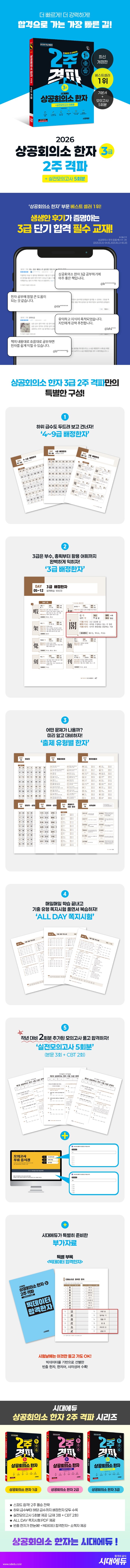 2026 시대에듀 상공회의소 한자 3급 2주 격파+실전모의고사 5회분