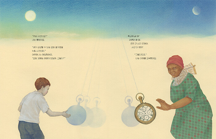 마주하고 싶지 않은 시간이 어서 지나가기를 바라던 아이가 꿈결 같은 만남을 통해 자신을 이루어 온 빛나는 기억과 앞으로 다가올 시간을 마주하며, 모든 순간이 단 한 번뿐인 소중한 삶의 일부임을 깨닫게 되는 과정을 그린다. 우리 삶을 한 권의 책에 비유해 유한하기에 더욱 아름답고 소중한 지금의 의미를 되새기게 하며, 시적인 문장과 아름답고 감각적인 그림이 어우러져 깊은 여운을 선사한다.