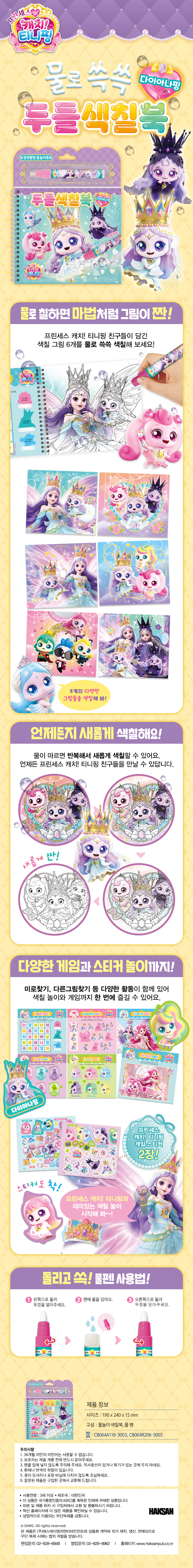 내지6장(색칠놀이, 게임구성), 물놀이 펜 1개, 스티커2장