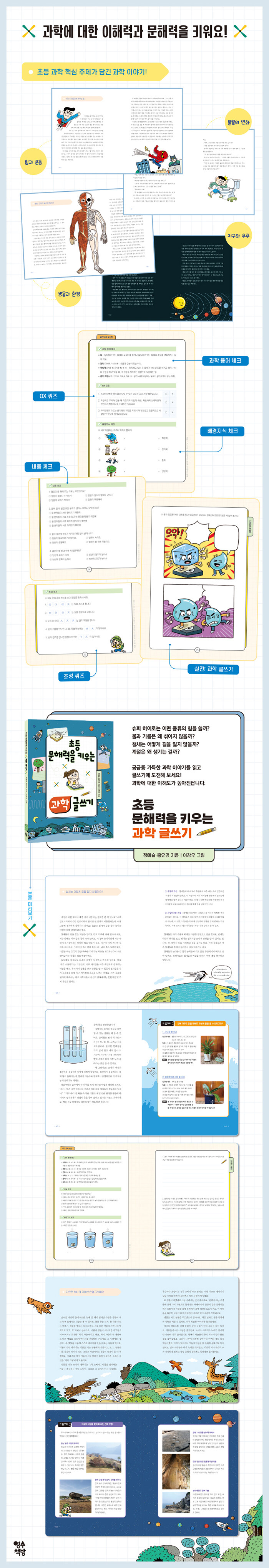 과학에 대한 이해력을 높이며 문해력도 키워요!본래 아이들은 과학을 좋아합니다. 넘어지는 이유를 묻고, 하늘을 올려다보고, 작은 변화에도 호기심을 보입니다. 다만 과학에 대한 호기심이 딱딱한 용어와 복잡한 원리, 시험과 정답 앞에서 작아지곤 합니다. 과학이 점점 더 낯선 과목이 되어 버립니다. 어떻게 하면 아이들이 다시 과학에 흥미를 가질 수 있을까요?