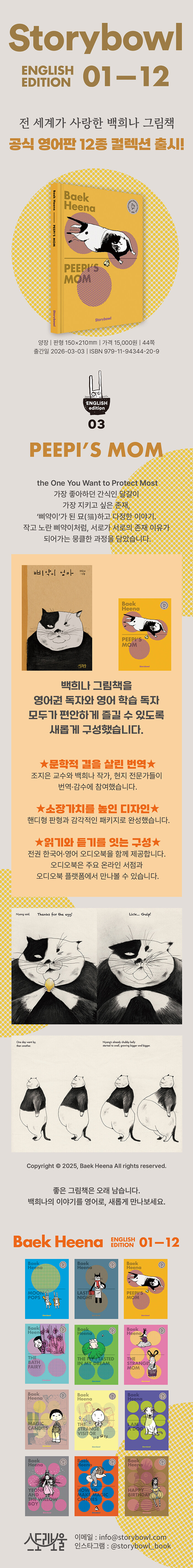 백희나 그림책 12종을 공식 영어판으로 선보이는 컬렉션스토리보울의 <백희나 그림책 잉글리시 에디션>은 《달샤베트》, 《장수탕 선녀님》, 《알사탕》 등 백희나 작가의 대표작 12종을 공식 영어판으로 선보이는 컬렉션이다. 번역, 편집, 디자인 전 과정을 새롭게 다듬고, 옥스퍼드대 언어학 교수 조지은(Jieun Kiaer)과 영미권 언어 전문가들이 번역과 감수에 참여해 원작의 리듬과 정서를 섬세하게 살렸다. 이번 에디션은 한 손에 편안하게 잡히는 핸디형 판형과 공식 아트워크 드로잉, 감각적인 디자인을 반영해 완성도를 높였다. 또한 영어·한국어 오디오북을 오디오북 플랫폼에서 별도로 감상할 수 있어, 읽기와 듣기를 아우르는 확장된 독서 경험을 제공한다.
