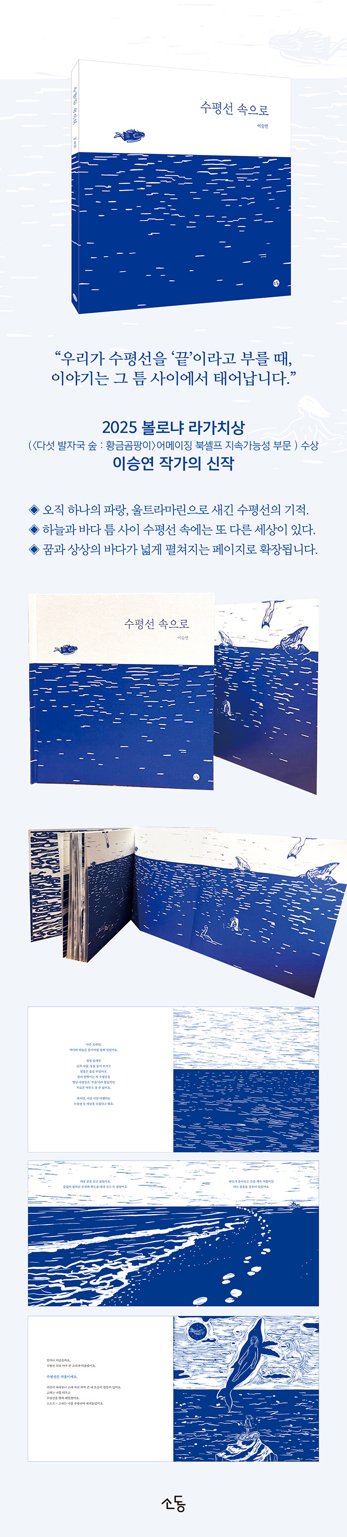 책에는 수평선 속 세상을 한눈에 볼 수 있는 가로로 길게 펼쳐지는 삽지 그림이 있습니다. 잠시 쉬며 수평선 속의 아름다움을 느껴보세요.