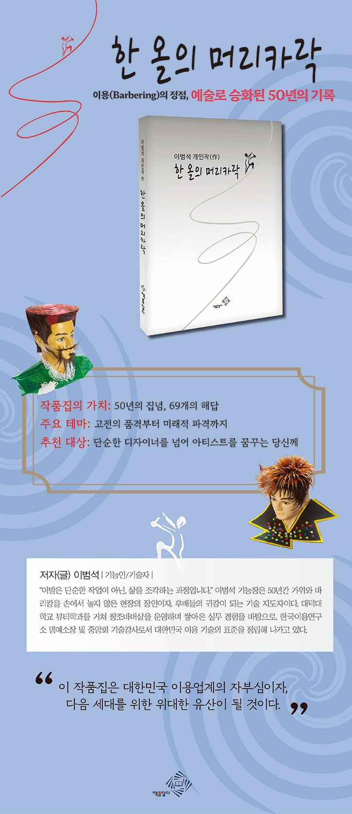 전통과 현대를 아우르는 총 69점의 예술적 헤어스타일은 이용 기술이 도달할 수 있는 최고의 경지를 보여준다. 이범석 작가의 기술 집약적 결과물인 이 작품집은 대한민국 이용업계의 자부심이자, 다음 세대를 위한 위대한 유산이 될 것이다.