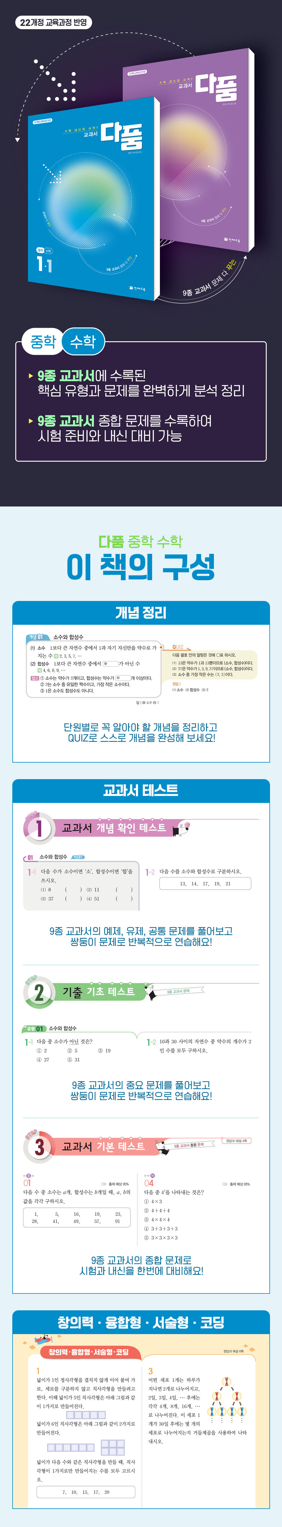 2022 개정 교육과정, 수학 내신의 시작! 교과서 다품은 9종 교과서 문제 다 푸는