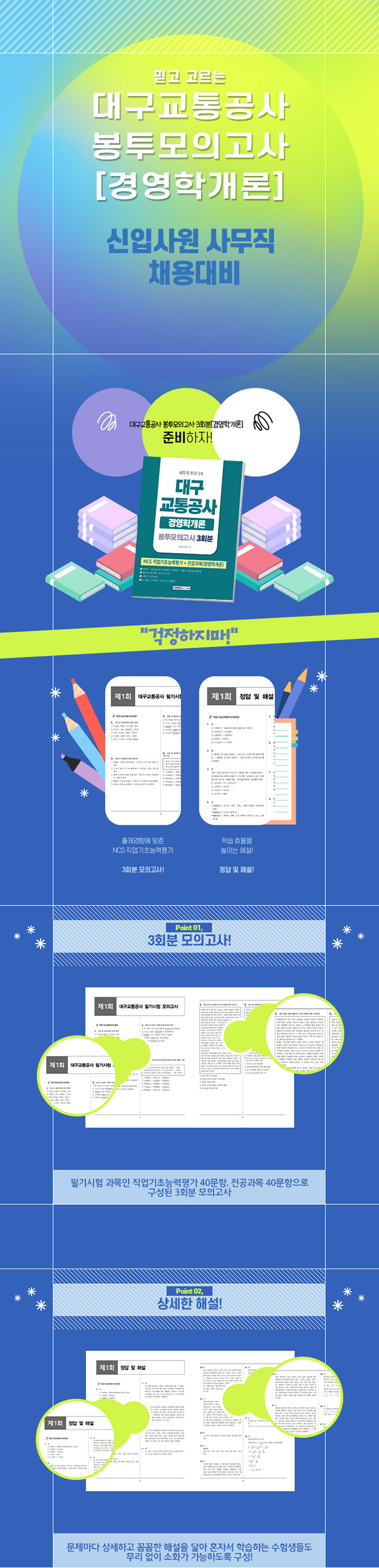 대구교통공사 신입사원 사무직 채용을 대비하기 위한 모의고사로, 기출동형의 3회분으로 구성되었습니다.