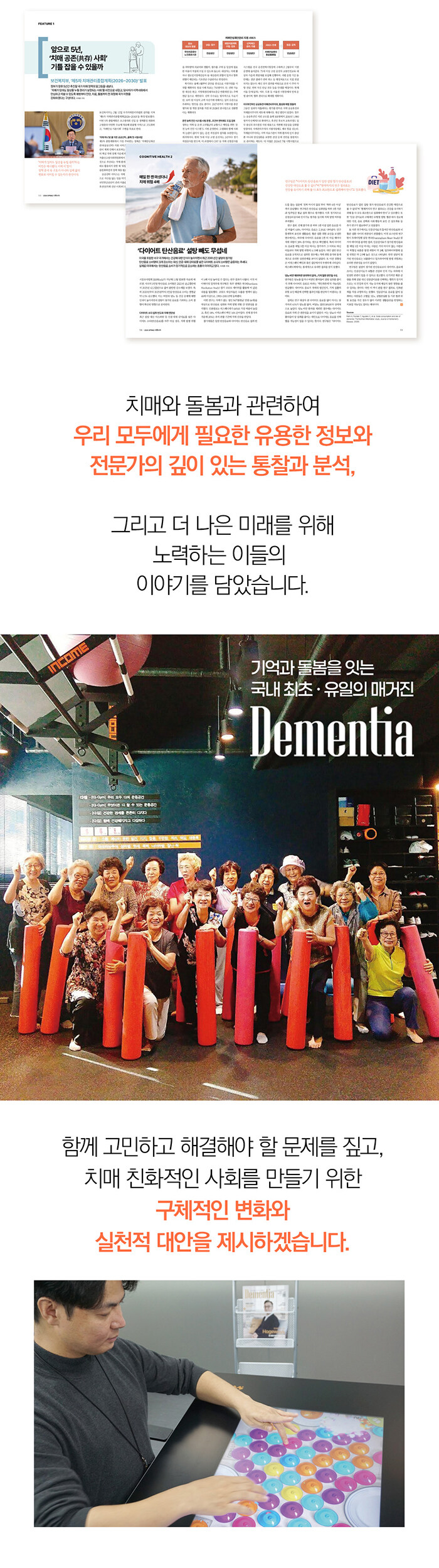 차가운 현실을 외면하지 않으면서도 그 안에 따스한 정책의 온기와 희망의 풍경을 채워 넣는 일, 그것이 우리가 꿈꾸는 기억을 잃어도 존엄은 잃지 않는 세상일 것입니다. 매거진《Dementia》는 앞으로도 기억을 잃어가는 이들이 끝내 존엄을 잃지 않는 세상을 향해 가장 앞서 걷겠습니다.
